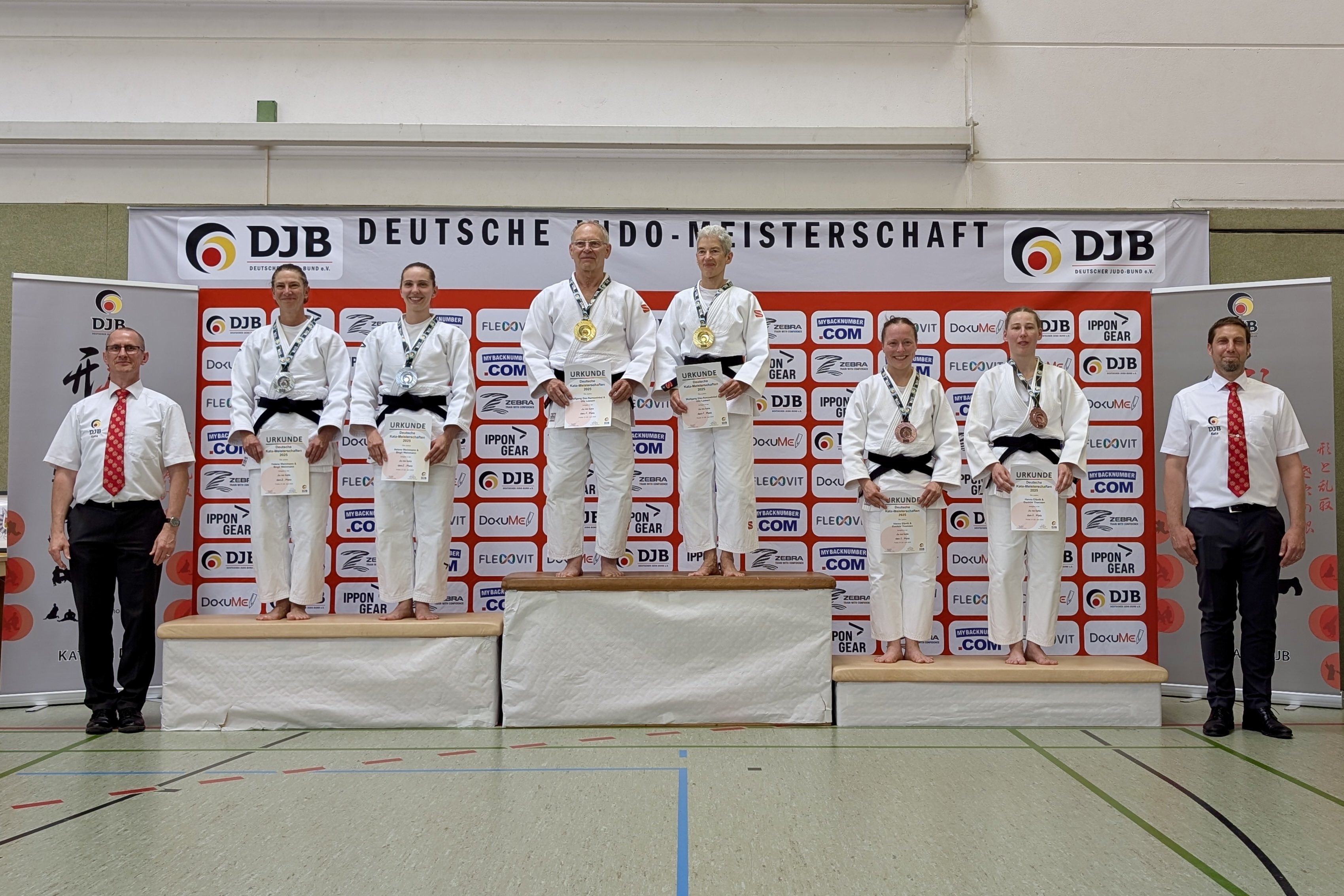 Auch am Sonntag wurde in Freital weiter hochklassige Kata demonstriert. In der Ju-no-kata bestätigten die Vize-Europameister Wolfgang Dax-Romswinkel und Ulla Loosen ihre Klasse. Nach starker Vorrunde dominierten sie das Finale und wurden Deutsche Meister. Auch das zweite NRW-Paar, Sebastian Bergmann und Jenny Frey, konnte sich ins Finale vorkämpfen.