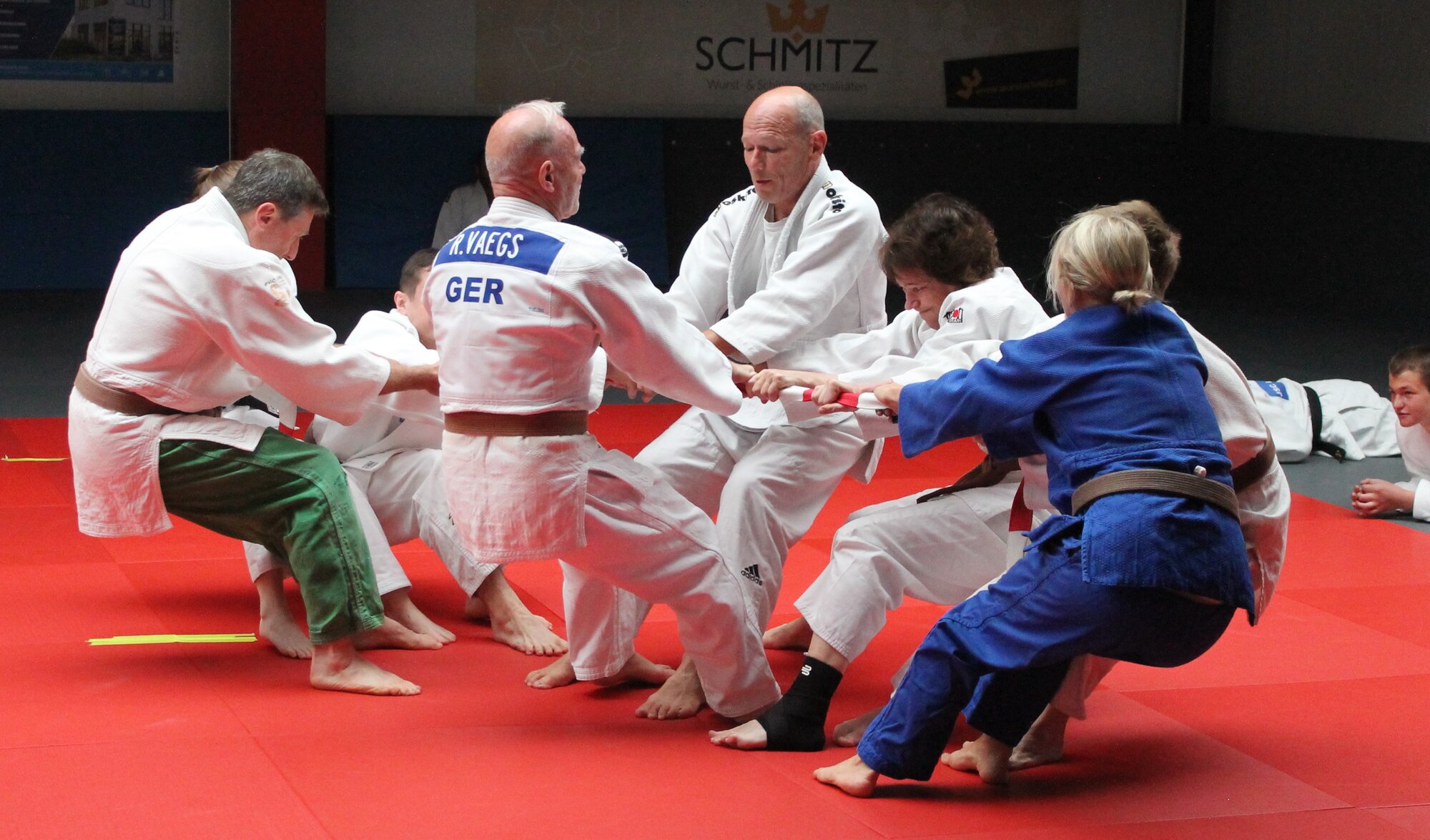 Selbst die traditionelle Begrüßung war mit einer herausfordernden Aufgabe verbunden, die die Teilnehmerinnen und Teilnehmer schon einmal im Zeitraffer durch alle Emotionen der kommenden Woche führen sollte. Nachdem dies erfolgreich geschafft war, startete das Lehrteam José Pereira, Jörn Stermann-Sinsilewski und Yusuf Aslan mit der Herausforderung jeder Dan Graduierung, der Kata. Von diesem Moment an waren alle mit Elan und Spaß dabei.