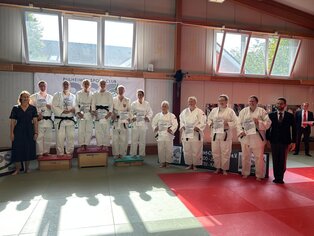 Am nächsten Morgen nutzten interessierte Teilnehmende des Turniers den Lehrgang, um von den erfahrenen Wertungsrichtern José Pereira Rodriguez und Michael Hoffmann anhand der Videoaufzeichnung ihrer Kata-Demonstration des Vortags und den ausgefüllten Bewertungsbögen Feedback zu ihrer Kata zu bekommen und Verbesserungspotentiale zu entdecken. Einige der „Aha!“-Erkenntnisse konnten dann bereits direkt auf der Matte umgesetzt werden. Diese intensive Rückmeldung zur Verbesserung und Leistungssteigerung ist für viele Teilnehmende bereits seit Jahren das Kernziel und das Alleinstellungsmerkmal des Dieter-Born-Gedächtnisturniers.