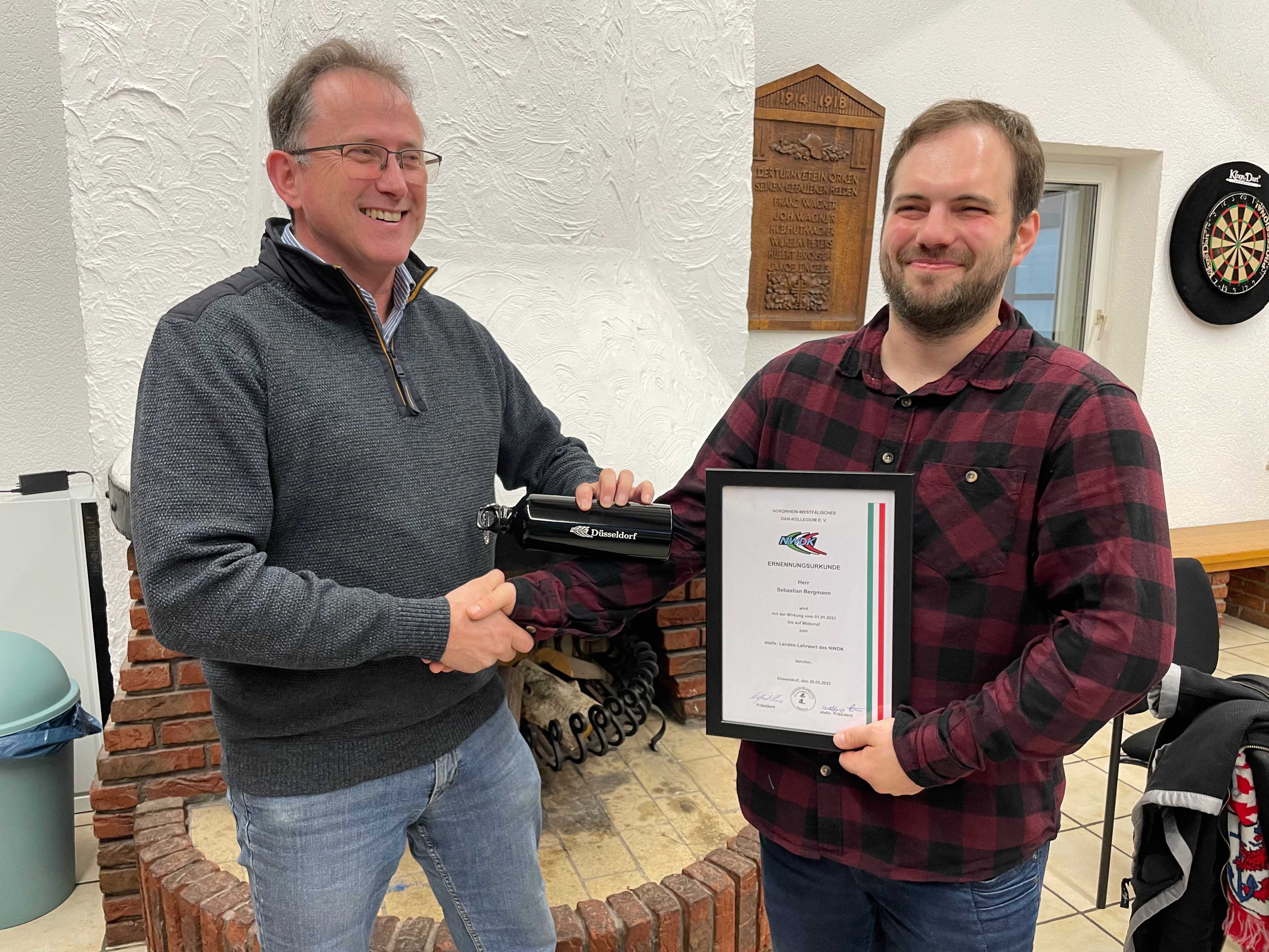 Zum Abschluss ging es bei einem Buffet und Getränken im gemütlichen Teil darum den Tag Revue passieren und alles bei guten Gesprächen ausklingen zu lassen. Dabei wurde auch Sebastian Bergmann seine Urkunde zur Ernennung als stellvertretender Landeslehrwart überreicht.
