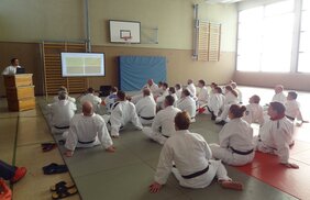 Der zweite Block beschäftigte sich zum einen mit dem Thema ‚Kata im Wahlbereich der Kyu-Graduierungsordnung‘ und zum anderen mit ‚Elementen der Bodenarbeit in der Katame-no Kata‘.
