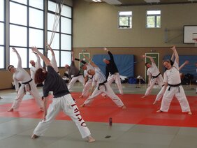 Das Referententeam war exzellent gewählt. So war mit Jenny Frey die Referentin des Deutschen Judo-Bundes für Taiso zu diesem Thema auf der Matte. Mit Sebastian Frey (DJB-Kata Referent) stand ein weiterer hochrangiger Referent zu verschiedenen Themen auf der Matte. Abgerundet wurde das Referenten-Team von Dieter Münnekhoff, NWDK-Katareferent und Stützpunktleiter für die Kata-Stützpunkte Dülmen und Düsseldorf.