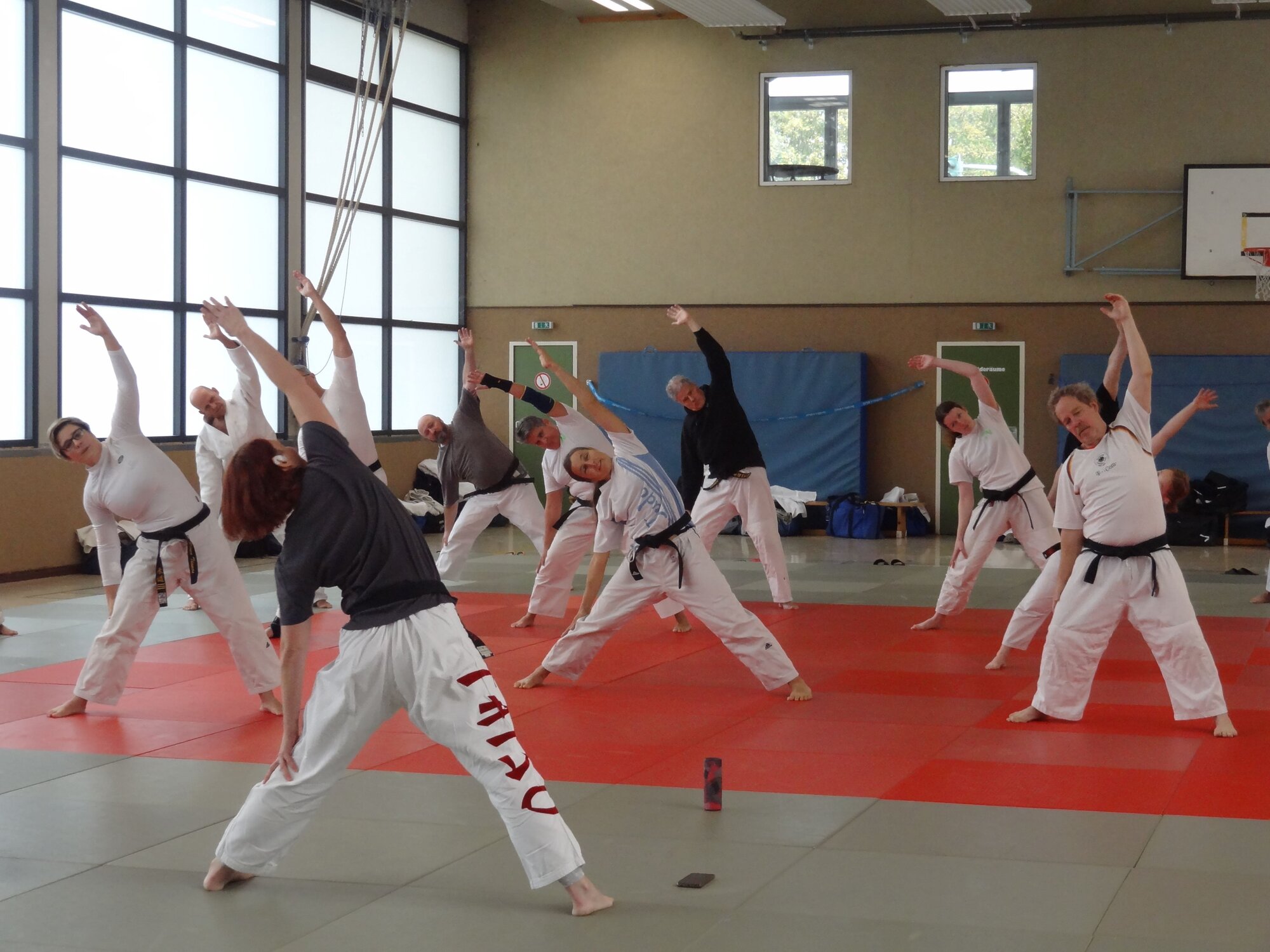 Beginnend ab 10 Uhr gab es drei Einheiten mit jeweils zwei Themen zur Auswahl. Im ersten Block stand auf der einen Matte Taiso im Mittelpunkt, während auf der anderen Matte ‚gleiche Techniken in unterschiedlichen Kata‘ thematisiert wurden.