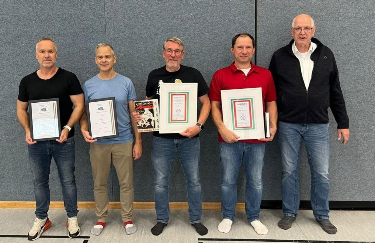 Darüber hinaus wurden im feierlichen Rahmen wichtige Funktionen für den Bezirk Münster offiziell bestätigt: Elmar Könn erhielt seine Ernennungsurkunde zum Dan-Beauftragten des Bezirks Münster. Ebenfalls ausgezeichnet wurde Markus Broy, der künftig als stellvertretender Bezirks-Dan-Beauftragter tätig sein wird.